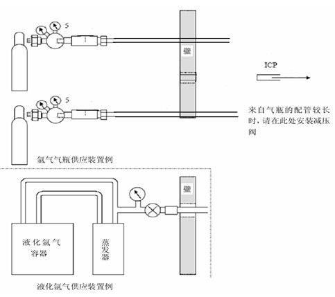 ♏氩气瓶到仪(yi)器(qi)的间隔应小于 5m,配管以下图所示,要注重(z♉hong)氩气瓶的妥帖安排,防止倾倒
