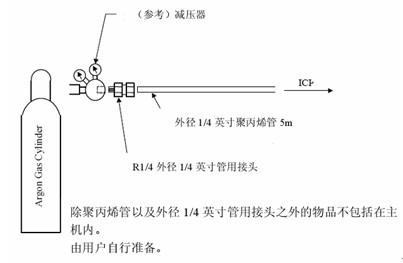 氩气的纯度应到达99.99%以上,起码须要两瓶,配两个减压表。出口压力:载气为0.3Mpa,冷却气为0.2MPa。