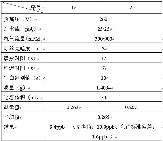 负高压(V):270;灯电流(mA):40/40;氩气流量(ml/M):300/800
