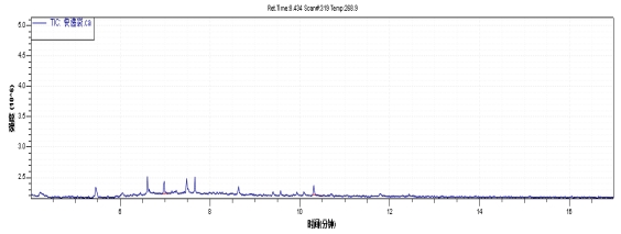 拔取某品牌快递包装袋停止邻苯二甲酸酯的快筛测试,谱图和检测成果以下: