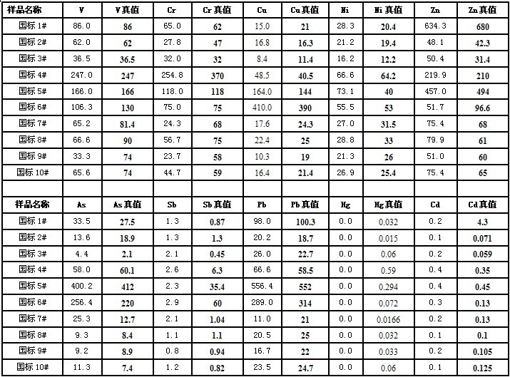 别的其(qi)装备对12大重金(jin)属元(yuan)素的检出限有: