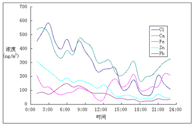 图4 天瑞设备 EHM-X200大气层高价属污染监测系统仪污染监测系统高价属再生物的小时内变动图