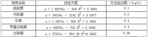 用有机物物制剂萃打硫酸铜溶液就能够或者残渣的有机物物磷除草剂,用GCMS终止测得,以恢复情况下和制约质谱图提取终止判定,以各救灾物资一酶联免疫法亚铁离子峰使用面积及外标法终止一酶联免疫法。在国际标准GB3838-2002中,对五种有机物物磷的限量版分离为:对硫磷3ug/L,甲基对硫磷2ug/L,马拉硫磷50 ug/L,乐果80 ug/L ,内吸磷30 ug/L,敌敌畏50 ug/L。